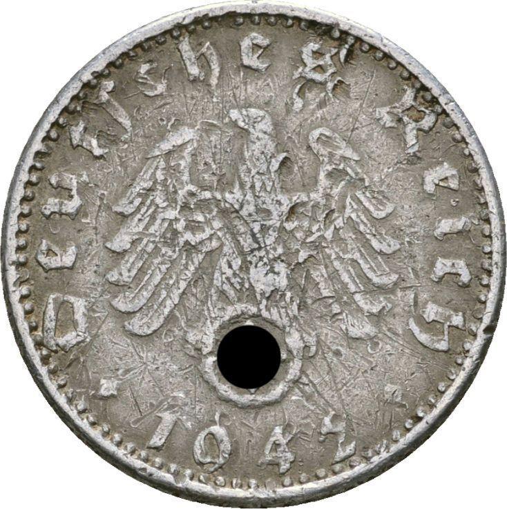 Find out the current coin value of the German 50 Reichspfennig 1942 with mark A. This aluminum coin from the times Third Reich struck at the Berlin Mint. Wondering how much a coin like this is worth? The record price belongs to the lot 1569 sold at the Katz Auction auction for EUR 15. Bidding took place October 29, 2022.