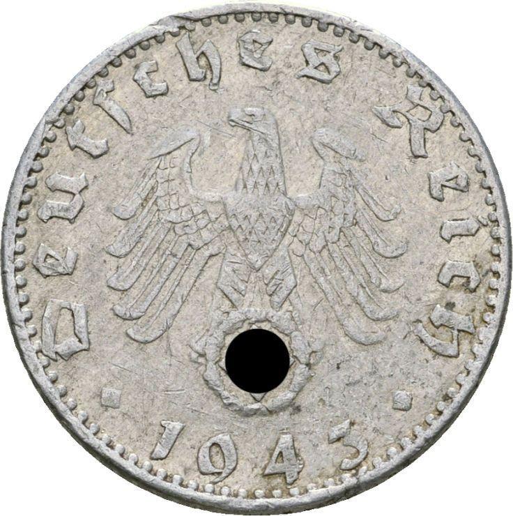 Find out the current coin value of the German 50 Reichspfennig 1943 with mark J. This aluminum coin from the times Third Reich struck at the Hamburg Mint. Wondering how much a coin like this is worth? The record price belongs to the lot 1504 sold at the WAG online Auktionen oHG auction for EUR 20. Bidding took place June 15, 2014.