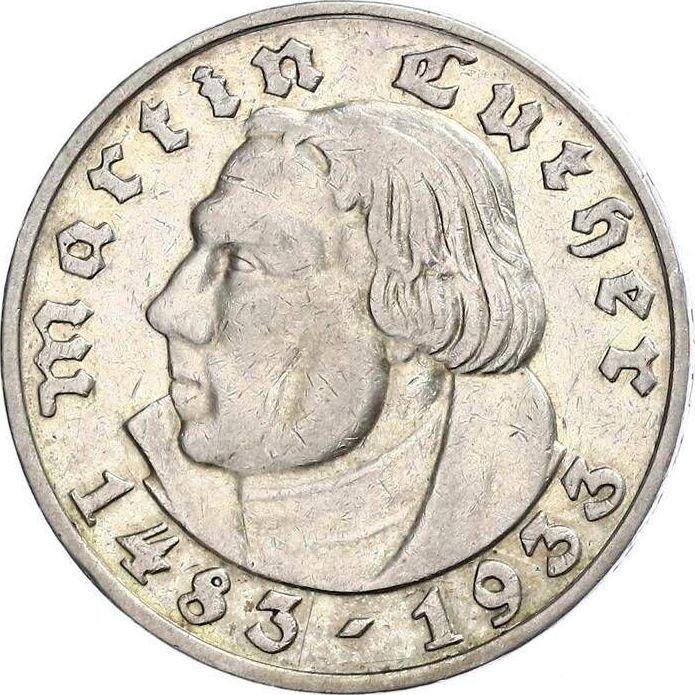 5 Reichsmark 1933 G "Martin Luther" (Germany, Third Reich)