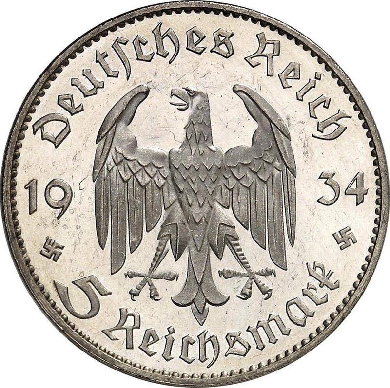 How much is the silver coin Third Reich 5 Reichsmark 1934 F "Garrison Church (with date)"?