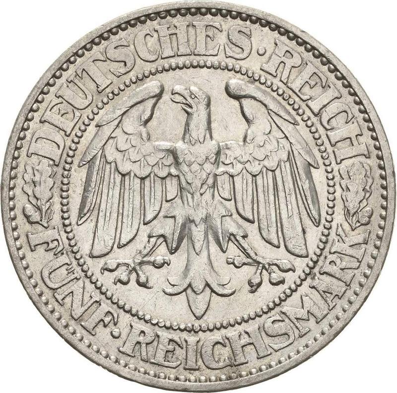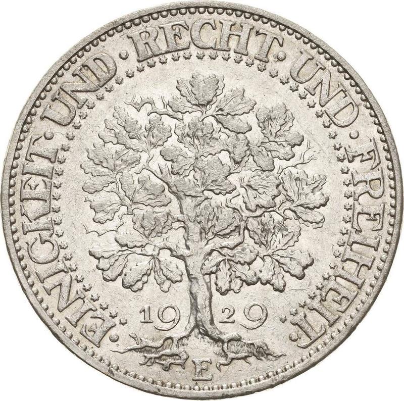 5 Reichsmark 1929 E "Oak Tree" (Germany, Weimar Republic)