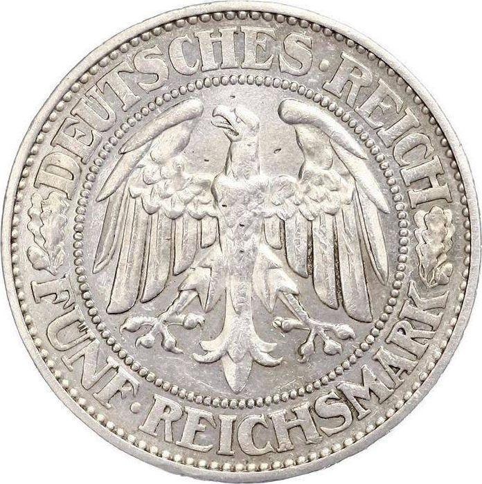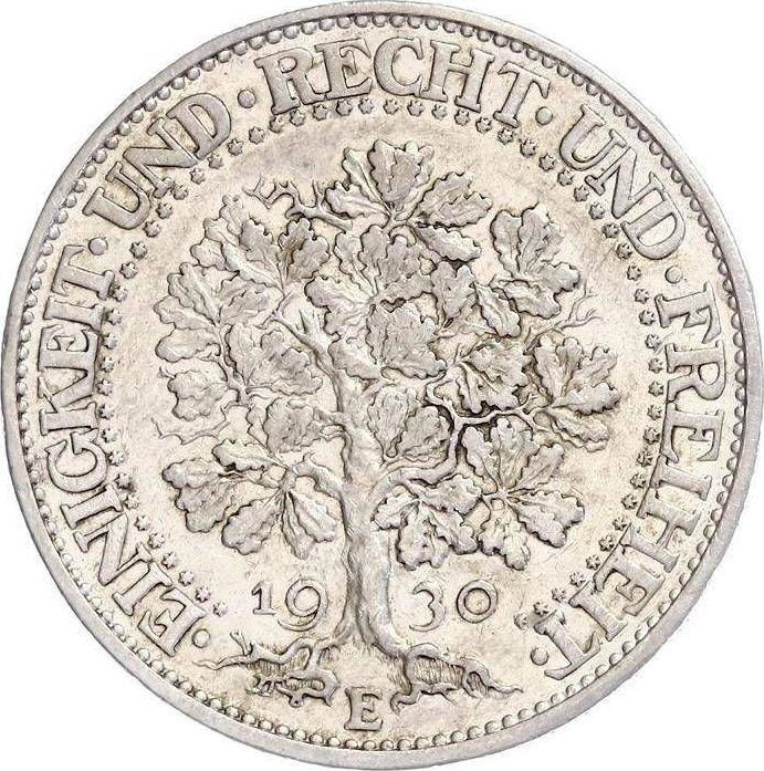 5 Reichsmark 1930 E "Oak Tree" (Germany, Weimar Republic)