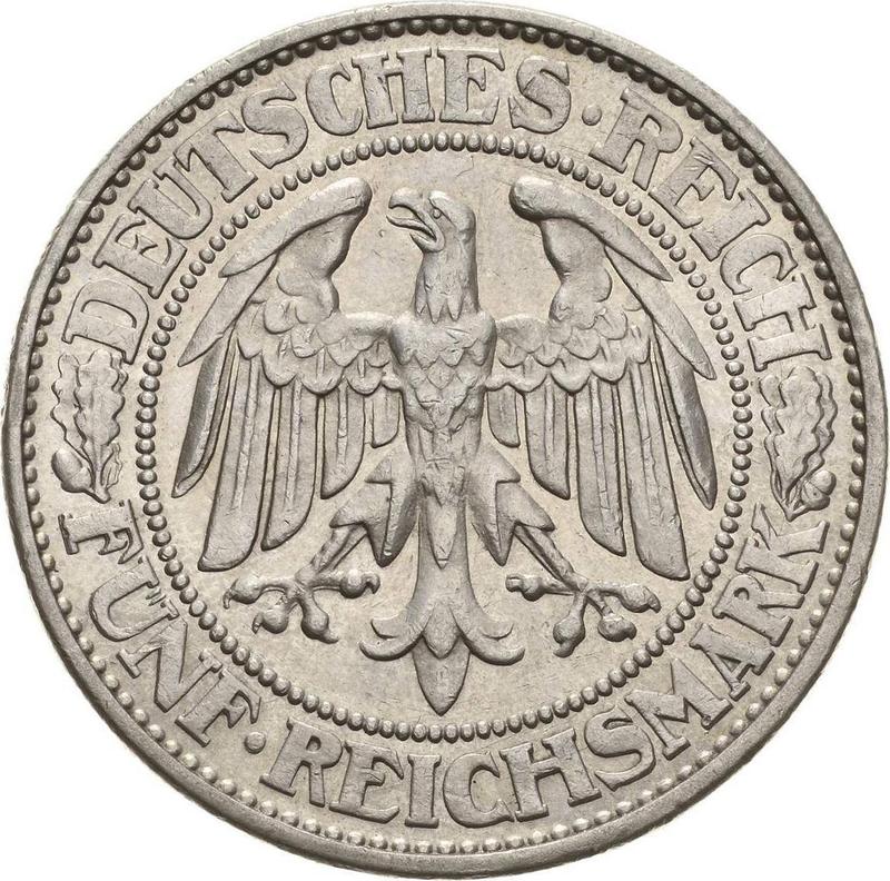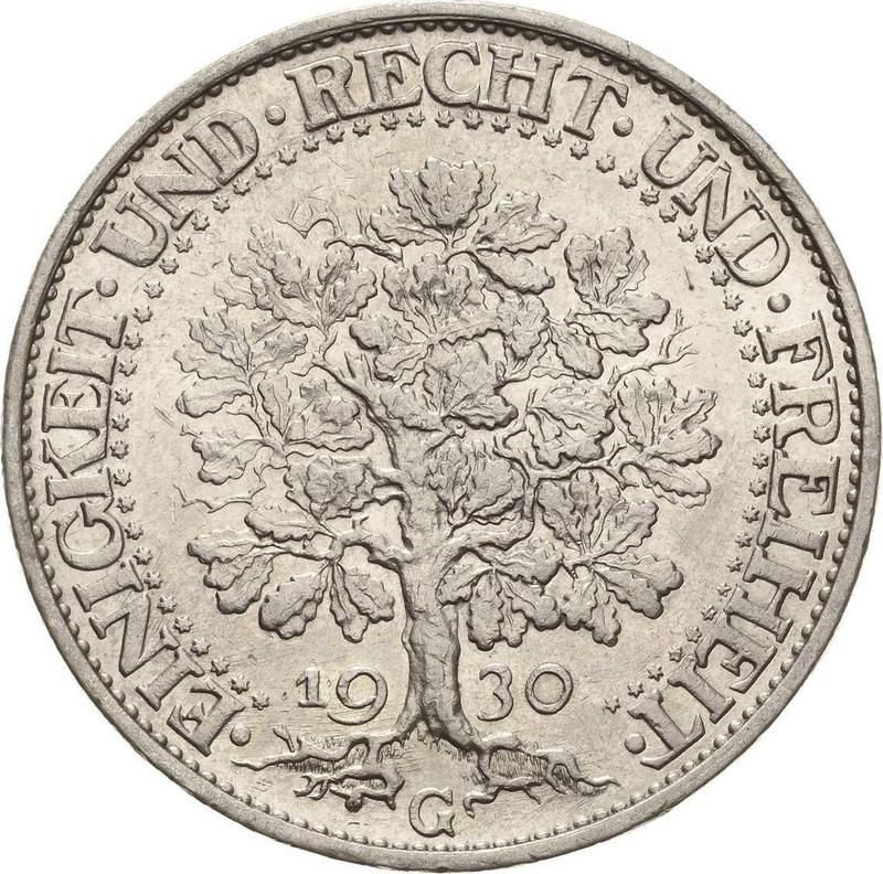 5 Reichsmark 1930 G "Oak Tree" (Germany, Weimar Republic)