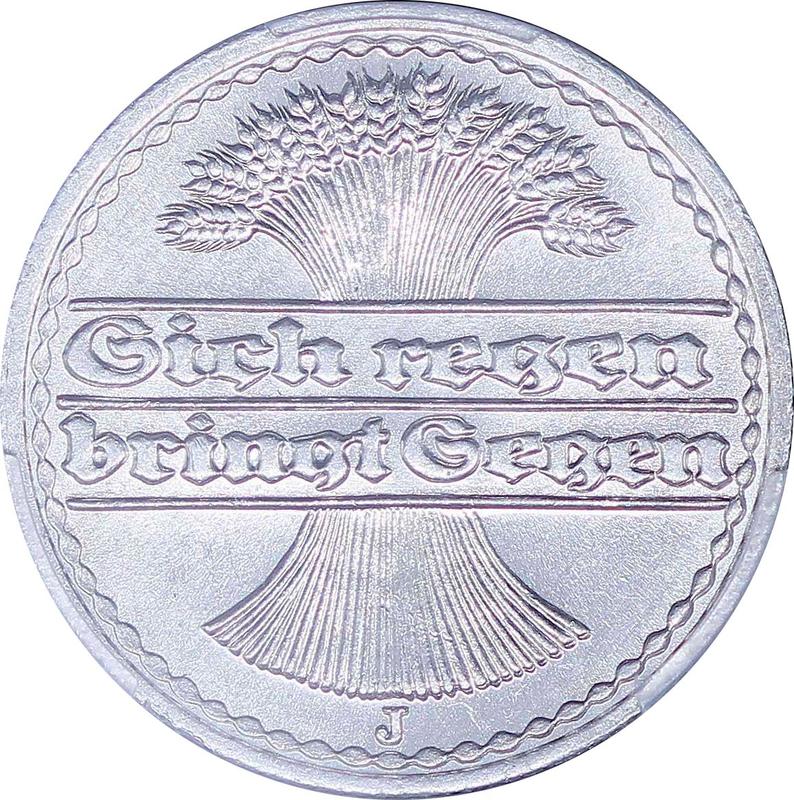 Find out the current coin value of the German 50 Pfennig 1921 with mark J. This aluminum coin from the times of Weimar Republic struck at the Hamburg Mint. Wondering how much a coin like this is worth? The record price belongs to the lot 191 sold at the Spink auction for GBP 130. Bidding took place November 12, 2003.