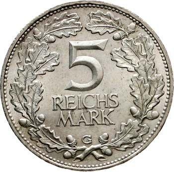 5 Reichsmark 1925 G "Rhineland" (Germany, Weimar Republic)