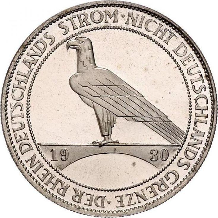 According to the latest data as of December 5, 2025 the average price of a Silver coin 5 Reichsmark 1930 "Rhineland Liberation" with mark A is 180 USD for regular strike and 1100 USD for coins minted using the PROOF technology.