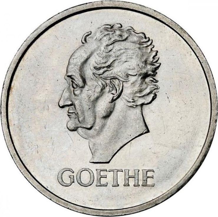 According to the latest data as of December 6, 2025 the average price of a Silver coin 5 Reichsmark 1932 "Goethe" with mark G is 2200 USD for regular strike and 4100 USD for coins minted using the PROOF technology.