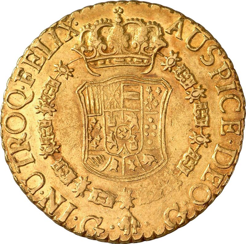 Find out the current coin value of the Guatemalan 8 Escudos 1768 with mark G. This gold coin from the times of Charles III struck at the Guatemala Mint. Wondering how much a coin like this is worth? The record price belongs to the lot 1068 sold at the MDC Monaco auction for EUR 90,000. Bidding took place October 20, 2021.