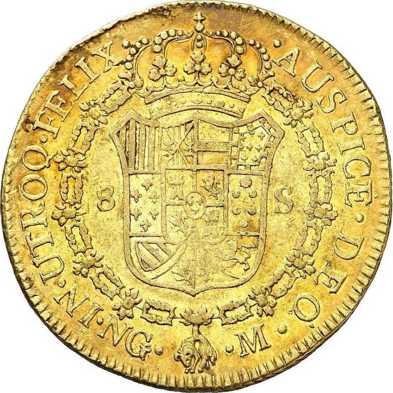 Find out the current coin value of the Guatemalan 8 Escudos 1808 with mark NG M. This gold coin from the times of Ferdinand VII struck at the Guatemala Mint. Wondering how much a coin like this is worth? The record price belongs to the lot 1069 sold at the MDC Monaco auction for EUR 60,000. Bidding took place October 20, 2021.