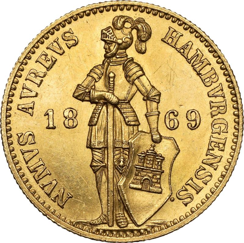Find out the current coin value of the hamburg Ducat 1869 with mark B. This gold coin from the times of Free City struck at the Hanover Mint. Wondering how much a coin like this is worth? The record price belongs to the lot 193 sold at the Münzenhandlung Harald Möller GmbH auction for EUR 1,500. Bidding took place June 1, 2023.