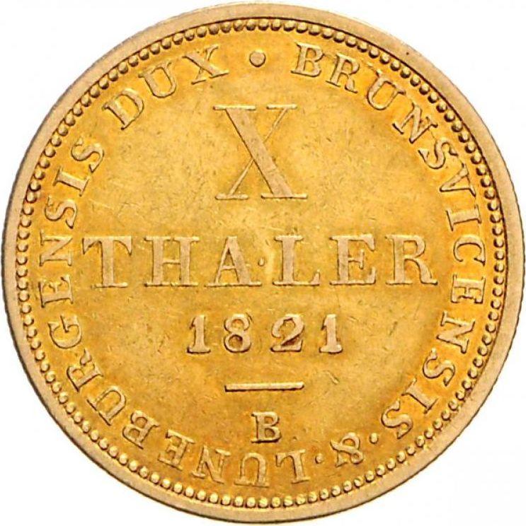 Find out the current coin value of the Hanover 10 Thaler 1821 with mark B. This gold coin from the times of George IV struck at the Hanover Mint. Wondering how much a coin like this is worth? The record price belongs to the lot 4844 sold at the Fritz Rudolf Künker GmbH & Co. KG auction for EUR 1,400. Bidding took place June 20, 2012.