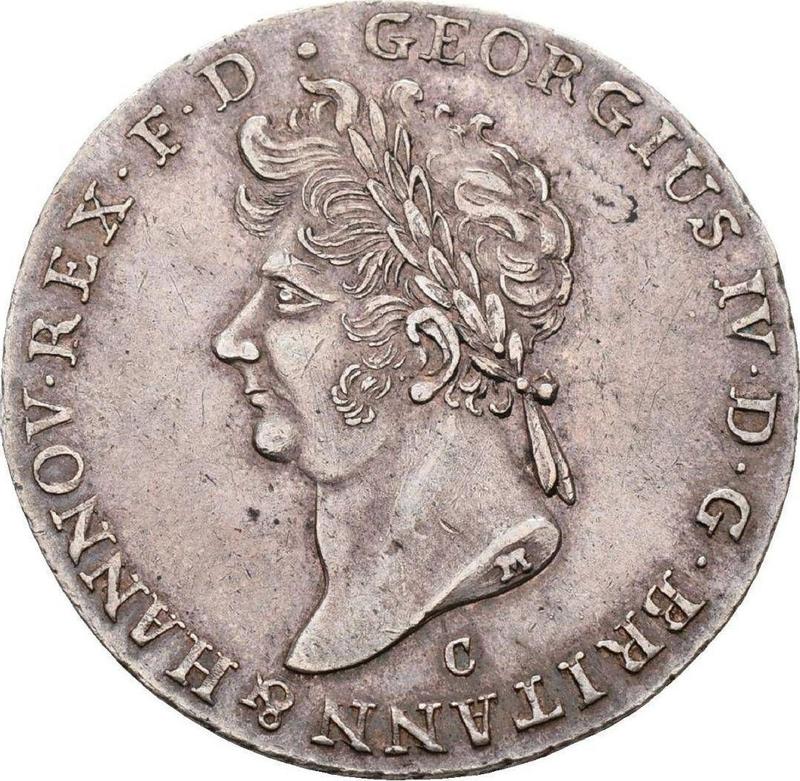Find out the current coin value of the Hanover 2/3 Thaler 1825 with mark C. This silver coin from the times of George IV struck at the Clausthal Mint. Wondering how much a coin like this is worth? The record price belongs to the lot 33862 sold at the Heritage Auctions auction for USD 300. Bidding took place September 5, 2019.