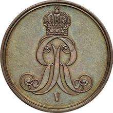 Find out the current coin value of the Hanover 2 Pfennig 1862 with mark B. This copper coin from the times of George V struck at the Hanover Mint. Wondering how much a coin like this is worth? The record price belongs to the lot 2379 sold at the GERHARD HIRSCH Nachfolger auction for EUR 120. Bidding took place September 23, 2022.