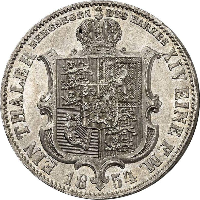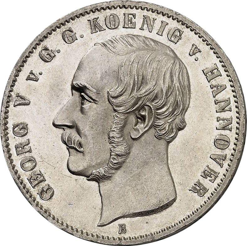 Find out the current coin value of the Hanover Thaler 1854 with mark B. This silver coin from the times of George V struck at the Hanover Mint. Wondering how much a coin like this is worth? The record price belongs to the lot 171 sold at the Aurea Numismatika auction for CZK 26,000. Bidding took place September 5, 2020.