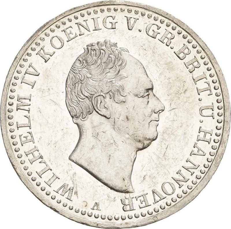 Find out the current coin value of the Hanover Thaler 1835 with mark A. This silver coin from the times of William IV struck at the Clausthal Mint. Wondering how much a coin like this is worth? The record price belongs to the lot 4068 sold at the Fritz Rudolf Künker GmbH & Co. KG auction for EUR 400. Bidding took place March 14, 2007.