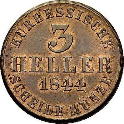 Find out the current coin value of the Hesse-Cassel 3 Heller 1844 . This copper coin from the times of William II struck at the Kassel Mint. Wondering how much a coin like this is worth? The record price belongs to the lot 1449 sold at the Fritz Rudolf Künker GmbH & Co. KG auction for EUR 220. Bidding took place February 1, 2022.