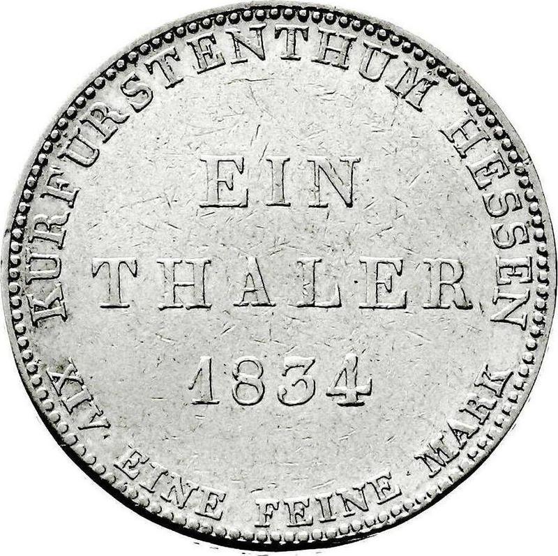 Find out the current coin value of the Hesse-Cassel Thaler 1834 . This silver coin from the times of William II struck at the Kassel Mint. Wondering how much a coin like this is worth? The record price belongs to the lot 1960 sold at the Fritz Rudolf Künker GmbH & Co. KG auction for EUR 550. Bidding took place March 15, 2016.
