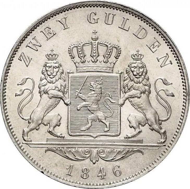 Find out the current coin value of the Hesse-Darmstadt 2 Gulden 1846 . This silver coin from the times of Louis II struck at the Darmstadt Mint. Wondering how much a coin like this is worth? The record price belongs to the lot 207 sold at the Heidelberger Münzhandlung Herbert Grün auction for EUR 800. Bidding took place May 13, 2016.
