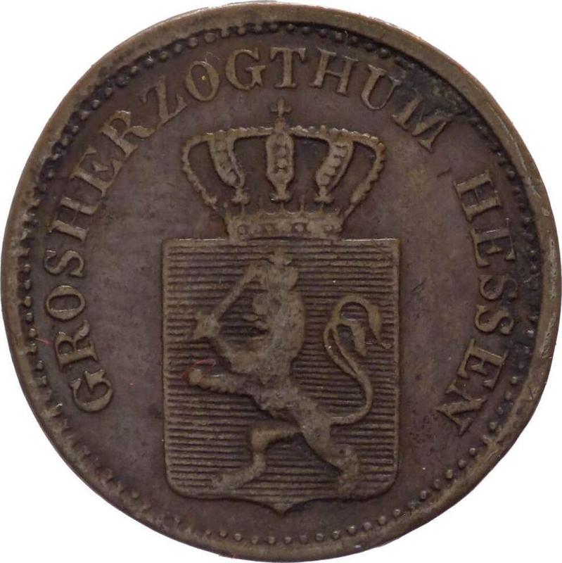 Find out the current coin value of the Hesse-Darmstadt 1 Pfennig 1860 . This copper coin from the times of Louis III struck at the Darmstadt Mint. Wondering how much a coin like this is worth? The record price belongs to the lot 792 sold at the Numismatica Ferrarese auction for EUR 4. Bidding took place September 23, 2023.