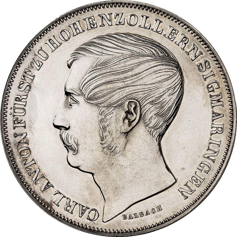 Find out the current coin value of the Hohenzollern-Sigmaringen 2 Gulden 1850 . This silver coin from the times of Karl Anton. Wondering how much a coin like this is worth? The record price belongs to the lot 6328 sold at the Teutoburger Münzauktion GmbH auction for EUR 4,600. Bidding took place September 8, 2012.
