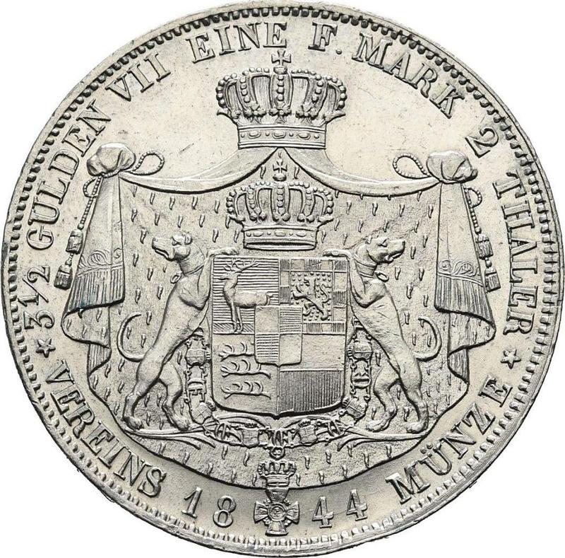 According to the latest data as of December 5, 2025 the average price of a Silver coin 2 Thaler 1844 is 1500 USD for regular strike and 9700 USD for coins minted using the PROOF technology.