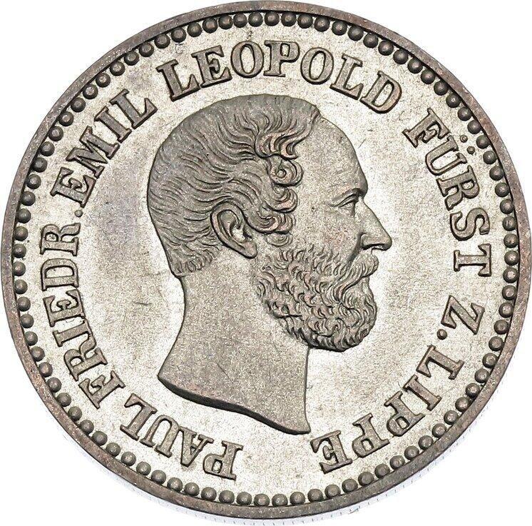 Find out the current coin value of the lippe Silber Groschen 1860 with mark A. This silver coin from the times of Paul Frederick Emil Leopold III struck at the Translation is missing Mint. Wondering how much a coin like this is worth? The record price belongs to the lot 22636 sold at the Stack's Bowers auction for USD 420. Bidding took place August 11, 2020.