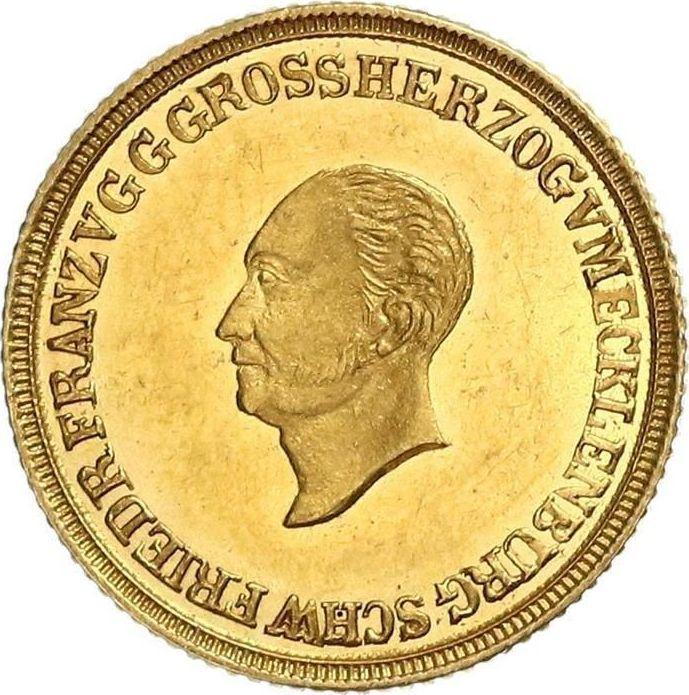 Find out the current coin value of the Mecklenburg-Schwerin 2 1/2 Thaler 1835 . This gold coin from the times of Frederick Francis I struck at the Please provide the text to be translated from Russian. Mint. Wondering how much a coin like this is worth? The record price belongs to the lot 818 sold at the WAG online Auktionen oHG auction for EUR 3,500. Bidding took place February 14, 2021.