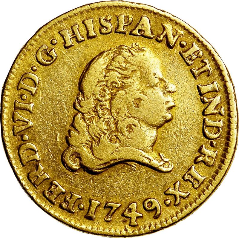 How much is the gold coin of Ferdinand VI 1 Escudo 1749 Mo MF?