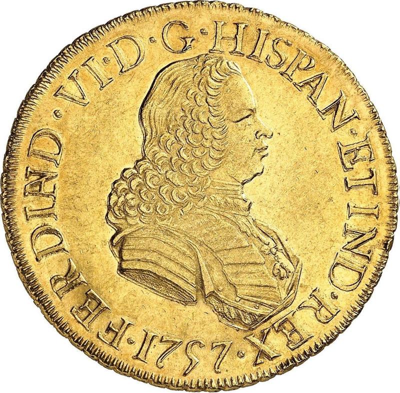 Find out the current coin value of the Mexican 8 Escudos 1757 with mark Mo MM. This gold coin from the times of Ferdinand VI struck at the Mexico City Mint. Wondering how much a coin like this is worth? The record price belongs to the lot 2029 sold at the Jesús Vico auction for EUR 33,000. Bidding took place June 26, 2025.