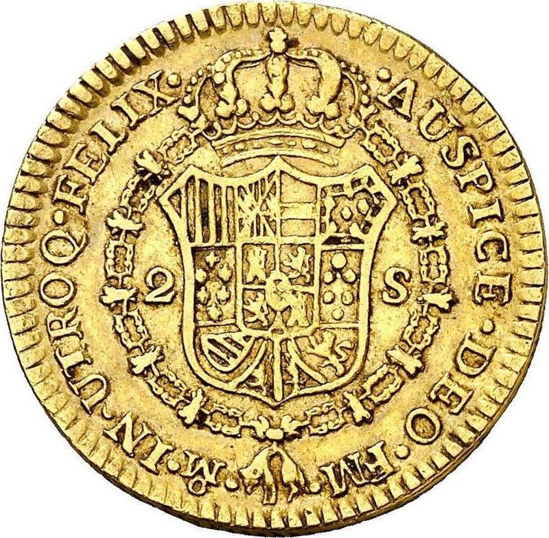 According to the latest data as of December 6, 2025 the average price of a Gold coin 2 Escudos 1786 with mark Mo FM is 600 USD. The coin contains 5,9063 g of pure gold, so we do not recommend selling it for less than 797,12 USD, even if it is in poor condition and has no collectible value.