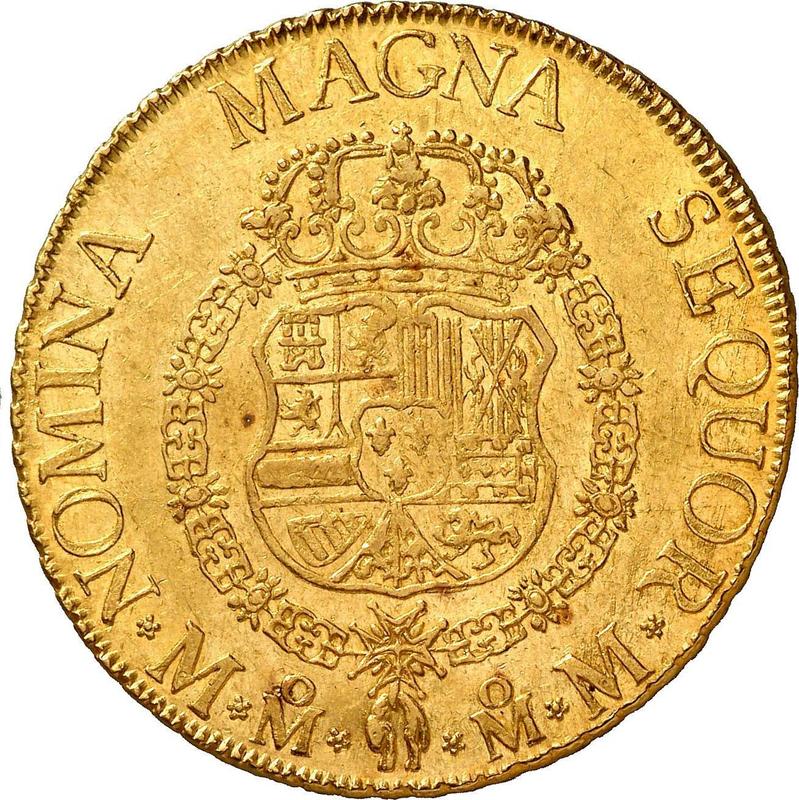 Find out the current coin value of the Mexican 8 Escudos 1761 with mark Mo MM. This gold coin from the times of Charles III struck at the Mexico City Mint. Wondering how much a coin like this is worth? The record price belongs to the lot 83 sold at the Fritz Rudolf Künker GmbH & Co. KG auction for EUR 18,500. Bidding took place February 2, 2012.