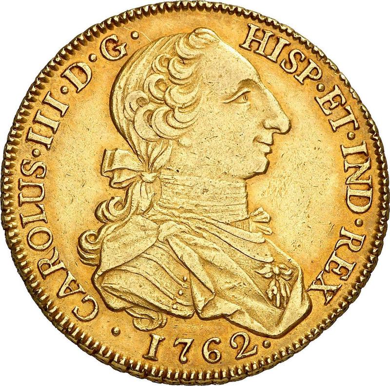 How much is the gold coin of Charles III 8 Escudos 1762 Mo MM?
