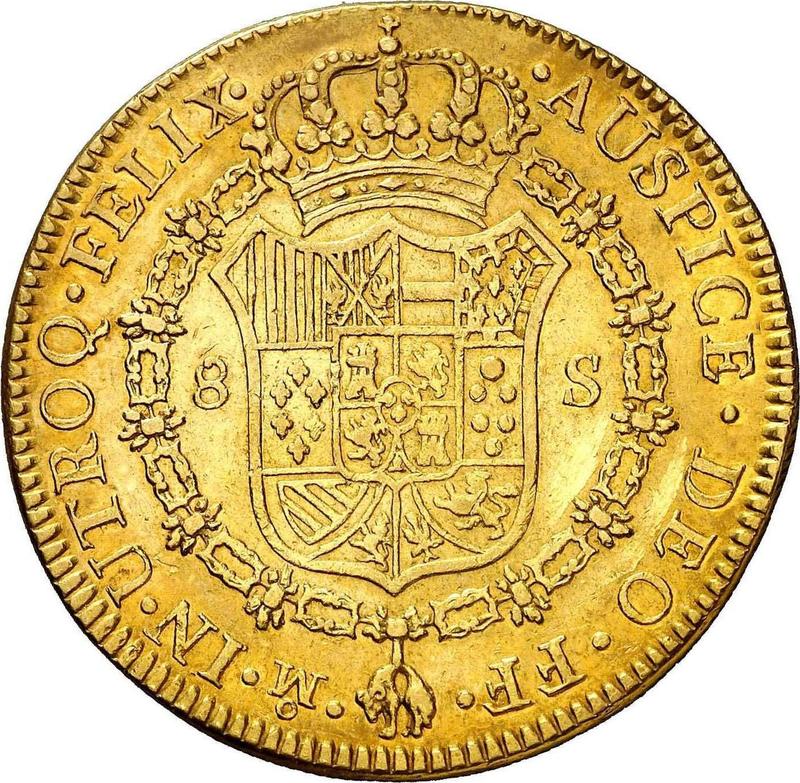 Find out the current coin value of the Mexican 8 Escudos 1778 with mark Mo FF. This gold coin from the times of Charles III struck at the Mexico City Mint. Wondering how much a coin like this is worth? The record price belongs to the lot 153 sold at the Daniel Frank Sedwick, LLC auction for USD 10,000. Bidding took place November 6, 2017.