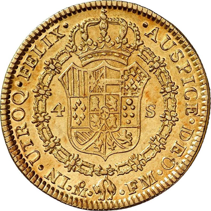 How much is the gold coin of Charles IV 4 Escudos 1789 Mo FM?