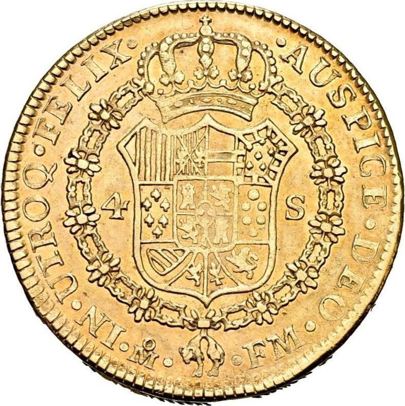 How much is the gold coin of Charles IV 4 Escudos 1799 Mo FM?