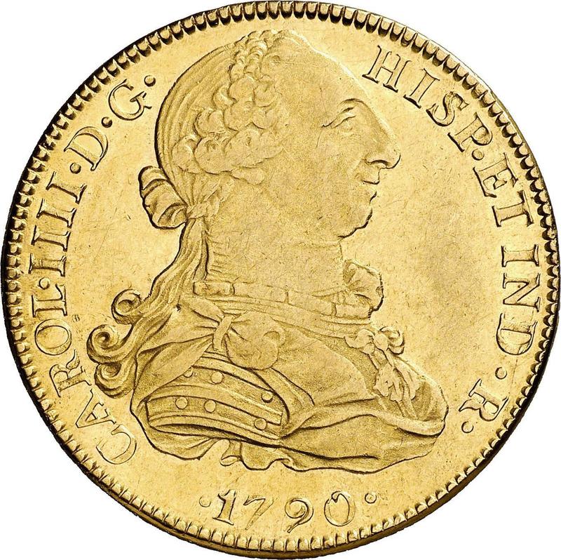 How much is the gold coin of Charles IV 8 Escudos 1790 Mo FM, "CAROL IIII"?