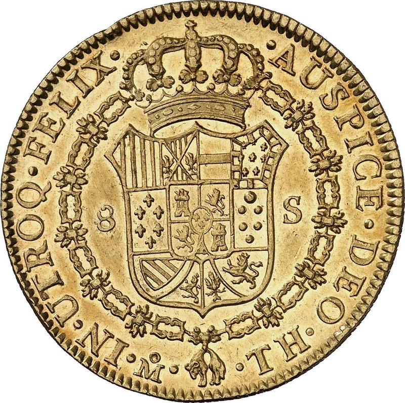 Find out the current coin value of the Mexican 8 Escudos 1804 with mark Mo TH. This gold coin from the times of Charles IV struck at the Mexico City Mint. Wondering how much a coin like this is worth? The record price belongs to the lot 32697 sold at the Heritage Auctions auction for USD 5,640. Bidding took place May 8, 2024.