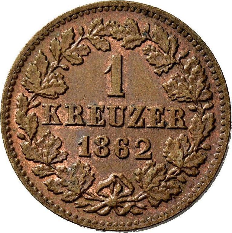 Find out the current coin value of the Nassau Kreuzer 1862 . This copper coin from the times of Adolphe struck at the Please provide the text to be translated from Russian. Mint. Wondering how much a coin like this is worth? The record price belongs to the lot 1110 sold at the Heidelberger Münzhandlung Herbert Grün auction for EUR 70. Bidding took place November 15, 2011.