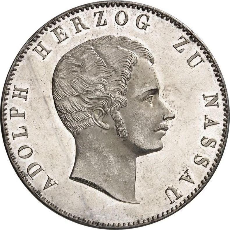 Find out the current coin value of the Nassau 2 Thaler 1840 . This silver coin from the times of Adolphe struck at the Please provide the text to be translated from Russian. Mint. Wondering how much a coin like this is worth? The record price belongs to the lot 3221 sold at the Auction World auction for JPY 980,000. Bidding took place April 15, 2023.