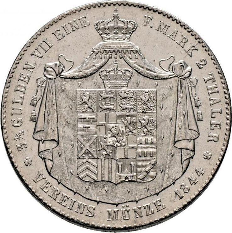 Find out the current coin value of the Nassau 2 Thaler 1844 . This silver coin from the times of Adolphe struck at the Please provide the text to be translated from Russian. Mint. Wondering how much a coin like this is worth? The record price belongs to the lot 35594 sold at the Heritage Auctions auction for USD 9,600. Bidding took place August 25, 2022.