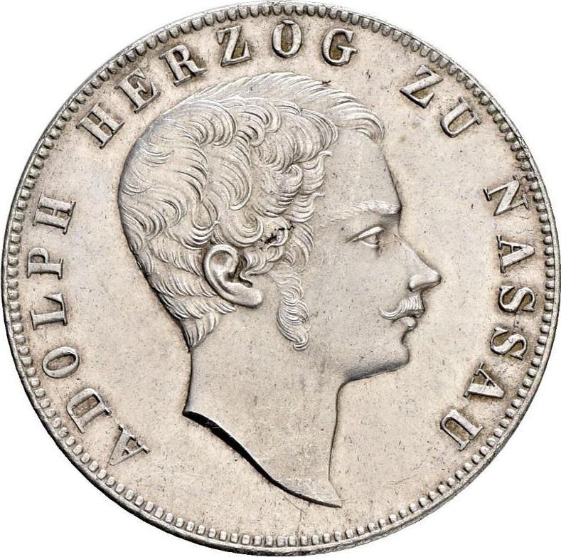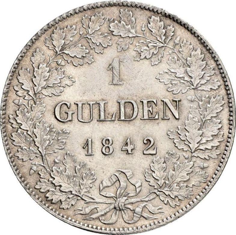 Find out the current coin value of the Nassau Gulden 1842 . This silver coin from the times of Adolphe struck at the Please provide the text to be translated from Russian. Mint. Wondering how much a coin like this is worth? The record price belongs to the lot 3496 sold at the Fritz Rudolf Künker GmbH & Co. KG auction for EUR 480. Bidding took place October 9, 2019.