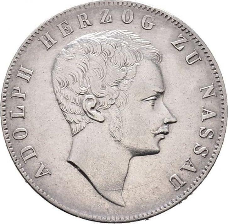Find out the current coin value of the Nassau Gulden 1844 . This silver coin from the times of Adolphe struck at the Please provide the text to be translated from Russian. Mint. Wondering how much a coin like this is worth? The record price belongs to the lot 945 sold at the Heidelberger Münzhandlung Herbert Grün auction for EUR 750. Bidding took place November 14, 2023.