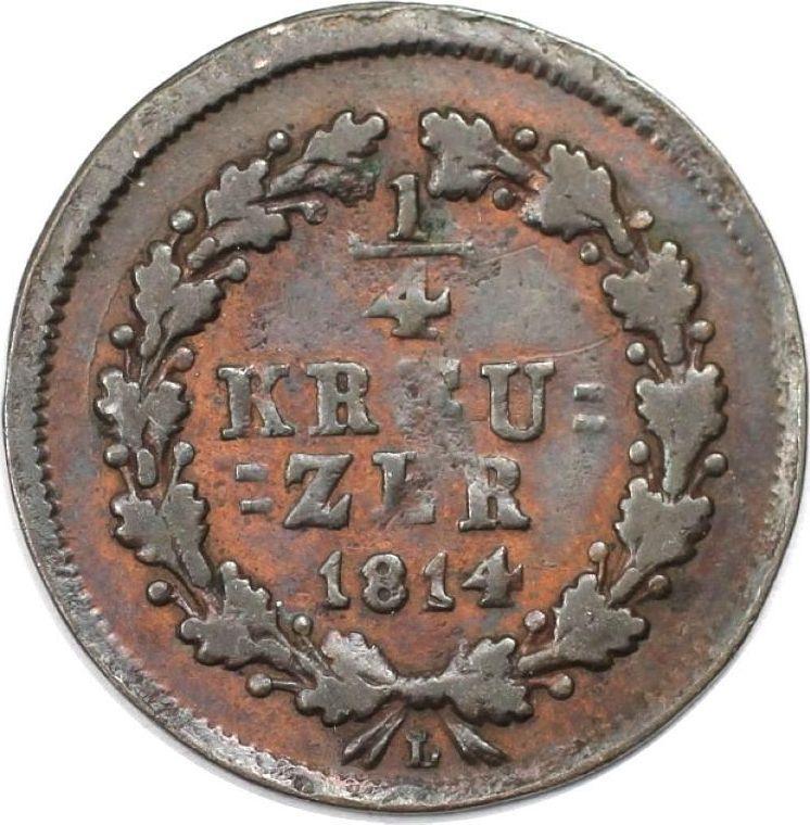 According to the latest data as of December 5, 2025 the average price of a coin 1/4 Kreuzer 1814 with mark L is 15 USD. The coin is made of non-precious metal, so in poor condition it may have extremely low value and liquidity.