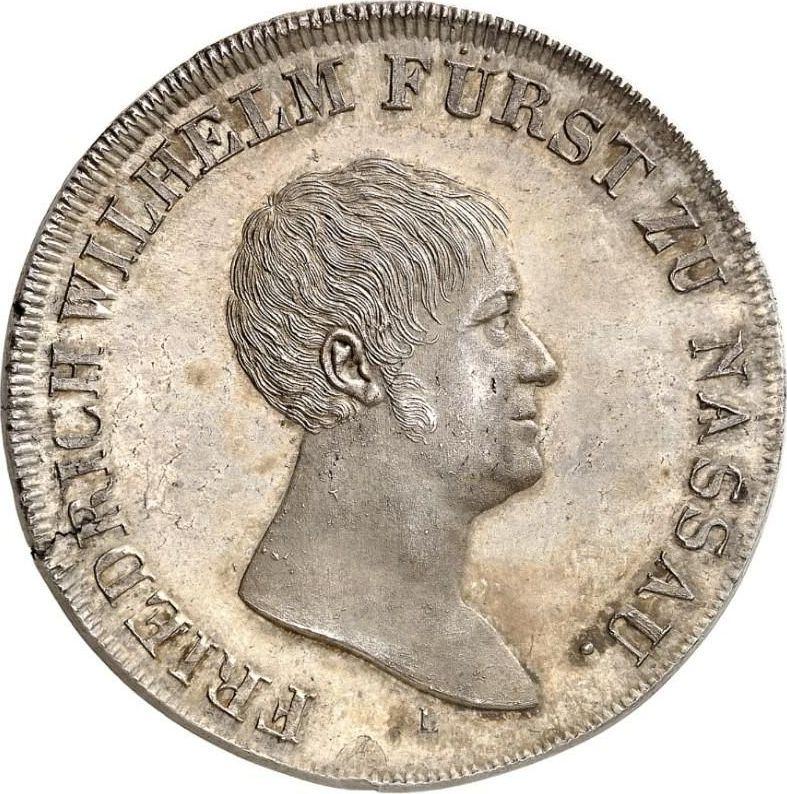 Find out the current coin value of the Nassau Thaler no date (1815) "Visiting the mint in Ehrenbreitstein" with mark L. This silver coin from the times of Frederick William. Wondering how much a coin like this is worth? The record price belongs to the lot 1840 sold at the Heidelberger Münzhandlung Herbert Grün auction for EUR 45,500. Bidding took place November 14, 2017.