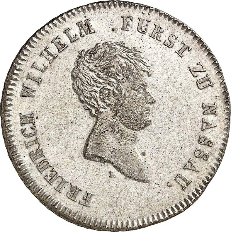 Find out the current coin value of the Nassau 20 Kreuzer 1809 with mark L. This silver coin from the times of Frederick William. Wondering how much a coin like this is worth? The record price belongs to the lot 4042 sold at the Fritz Rudolf Künker GmbH & Co. KG auction for EUR 1,300. Bidding took place March 20, 2018.