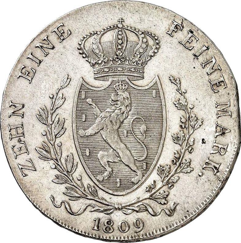 Find out the current coin value of the Nassau Thaler 1809 with mark L. Oak branch. This silver coin from the times of Frederick William. Wondering how much a coin like this is worth? The record price belongs to the lot 778 sold at the Fritz Rudolf Künker GmbH & Co. KG auction for EUR 7,500. Bidding took place February 2, 2006.