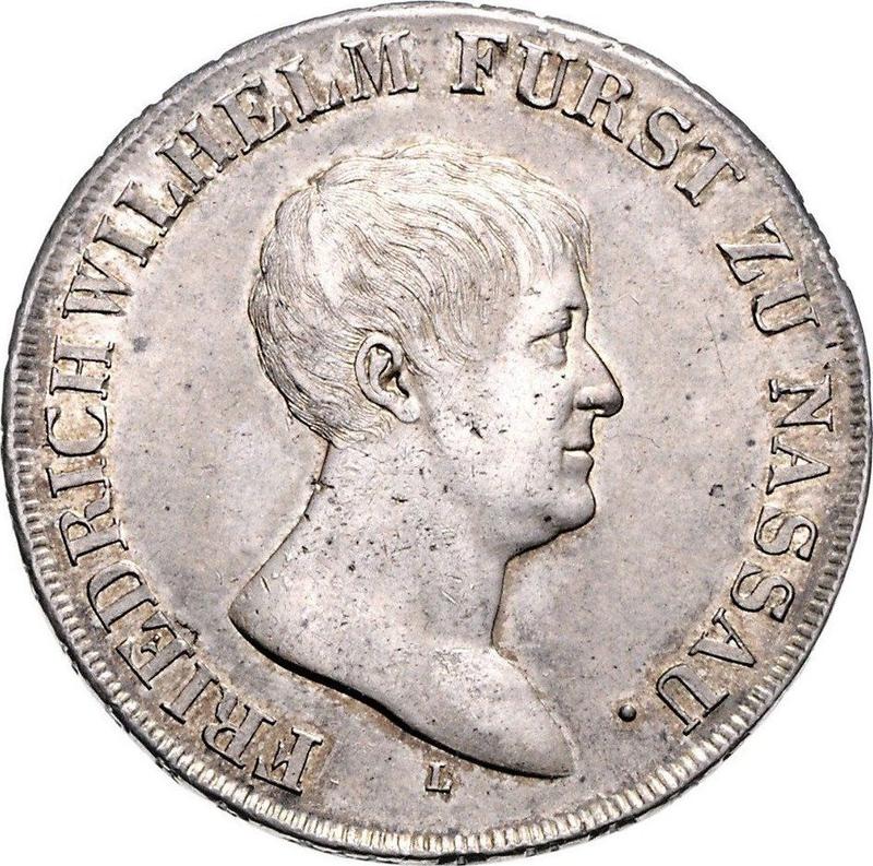 Find out the current coin value of the Nassau Thaler 1813 with mark CT L. This silver coin from the times of Frederick William. Wondering how much a coin like this is worth? The record price belongs to the lot 240 sold at the Fritz Rudolf Künker GmbH & Co. KG auction for EUR 2,600. Bidding took place February 4, 2016.