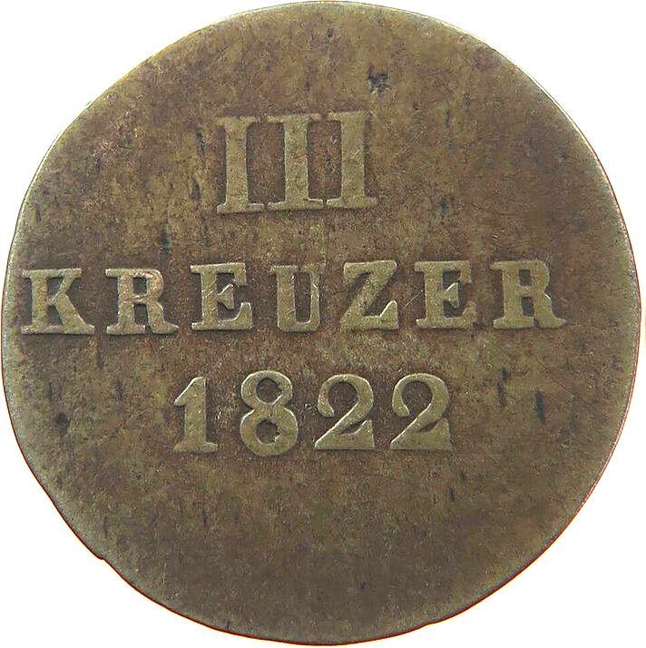 Find out the current coin value of the Nassau 3 Kreuzer 1822 . This silver coin from the times of William. Wondering how much a coin like this is worth? The record price belongs to the lot 1070 sold at the Heidelberger Münzhandlung Herbert Grün auction for EUR 70. Bidding took place November 15, 2011.