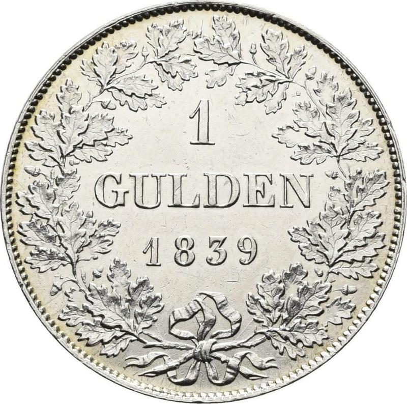 Find out the current coin value of the Nassau Gulden 1839 . This silver coin from the times of William struck at the Please provide the text to be translated from Russian. Mint. Wondering how much a coin like this is worth? The record price belongs to the lot 2211 sold at the Fritz Rudolf Künker GmbH & Co. KG auction for EUR 600. Bidding took place March 15, 2016.