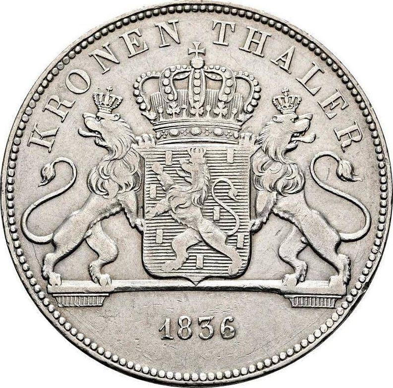 Find out the current coin value of the Nassau Thaler 1836 . This silver coin from the times of William struck at the Please provide the text to be translated from Russian. Mint. Wondering how much a coin like this is worth? The record price belongs to the lot 214 sold at the MDC Monaco auction for EUR 1,700. Bidding took place October 20, 2021.